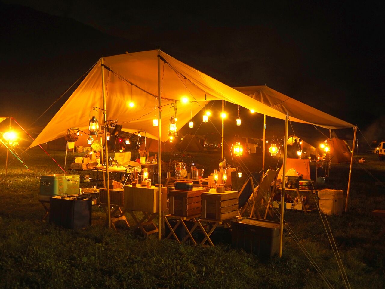 芝生エリアには、グランピング空間に