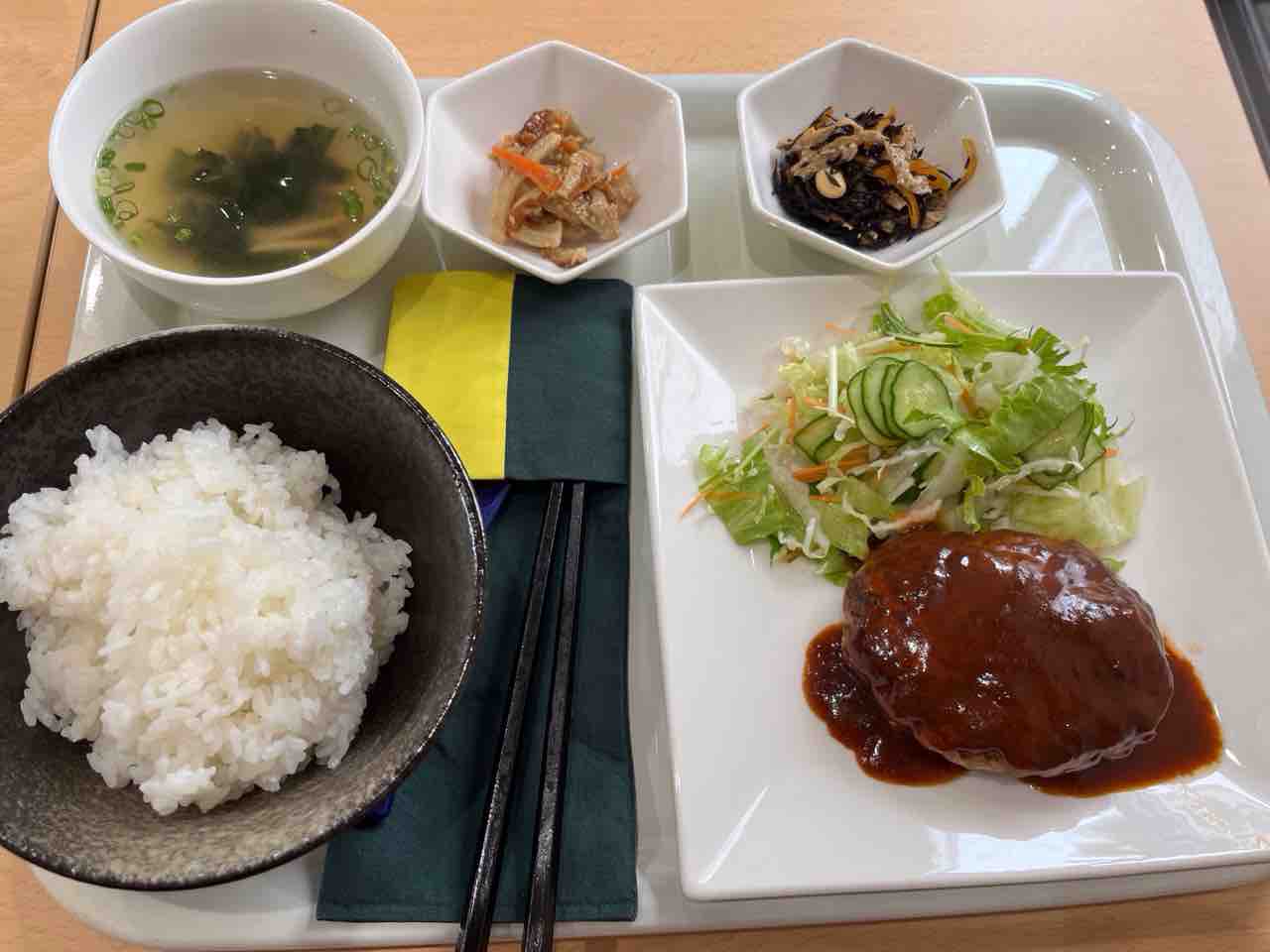 先輩は『ハンバーグ定食』を。