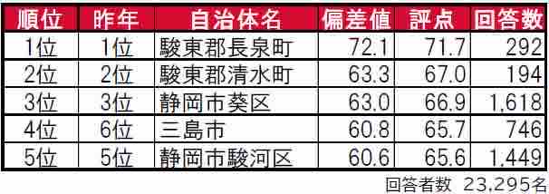 第1位は…『駿東郡 長泉町』!