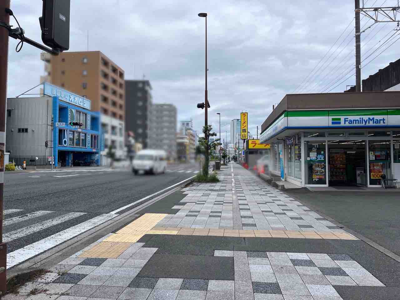 『ファミマ』の手前に黄色い看板!
